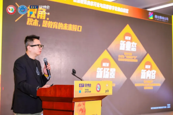 在大会主题演讲环节,陈长杰以《超越玩具界限:积木教育的多元化与深度数字化融合》为题,分享了其从积木玩家到积木教育从业者的思考与探索。他指出,积木的价值已超越玩具本身,正演进为连接创意与教育的“未来学习接口”,并正在突破内容、场景和业态三大边界。