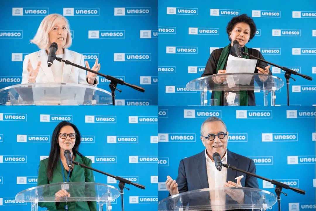 网龙还与联合国教科文组织共同举办了数字学习周开幕酒会,UNESCO教育助理总干事Stefania Giannini(下图左上),UNESCO IITE 理事会主席、北京师范大学智慧学习研究院讲席教授Asha Kanwar(下图右上),UNESCO教育技术与人工智能部门主任Shafika Isaacs(下图左下),网龙副董事长梁念坚博士(下图右下)等出席了酒会并致辞。Stefania Giannini女士对网龙的AI数字人技术表示认可,并邀请网龙利用AI生产中心的能力,为其制作本次学习周活动的致辞视频。